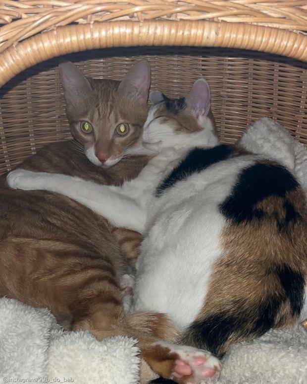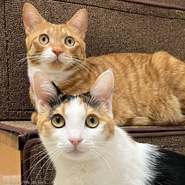 비비는 암컷 코리안 숏헤어 고양이로 한 달 차이 나는 수컷 고양이 '꾸꾸'와 함께 지내고 있다.