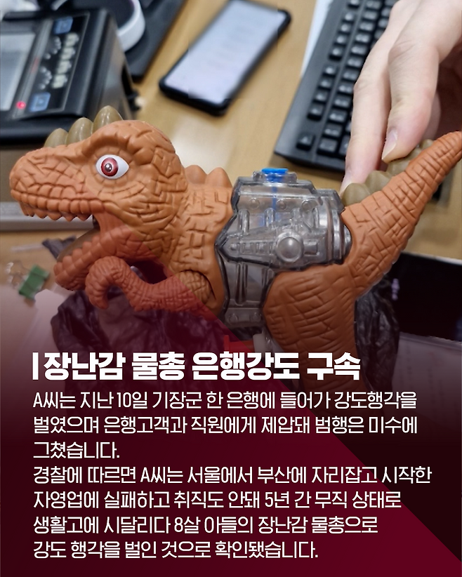 아들 장난감물총들고 은행강도 행각 벌이다 구속