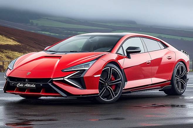 자동차 가상 렌더링 크리에이터 콜 아티샤(Cole Attisha)는 람보르기니 전기 세단 상상도를 최근 공개했다. 가상의 람보르기니 전기 세단에는 과거 출시 직전까지 갔던 세단 모델 ‘에스토크(Estoque)’의 이름이 붙었다. AI의 힘을 빌려 제작한 해당 상상도는 람보르기니 최신 슈퍼카 레부엘토의 요소를 대거 반영했다.