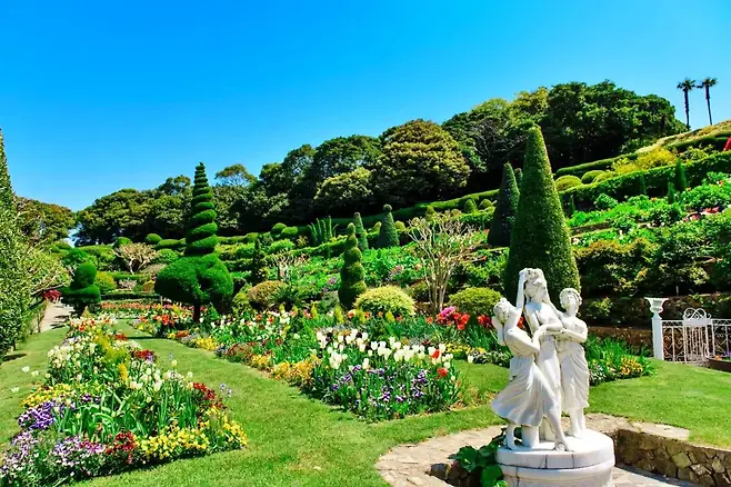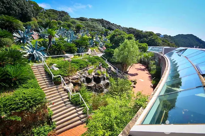 푸른 바다 위 열대식물원이 있다면 바로 이곳. 외도 보타니아는 거제에서 꼭 가야 할 곳으로 꼽힌다. 계단식 산책로를 따라 다양한 식물과 바다 풍경이 이어진다.
