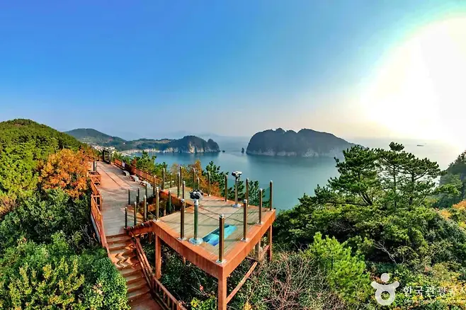 지중해풍 조형물이 조화를 이루는 이국적 배경 속에서 인생샷을 남기기에 최적이다. 전망대에서는 거제도 바다뿐 아니라 멀리 해금강의 모습도 조망할 수 있다.