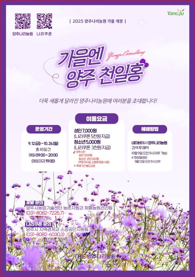 예매 방법 : 네이버에서 ‘양주나리농원’ 검색 후 예약 (현장 발권 가능)
