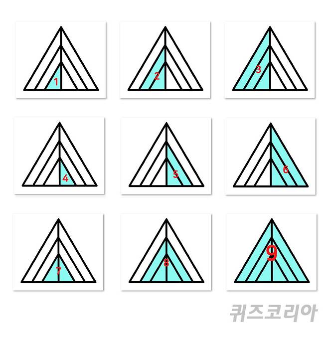 아래 도형에서 삼각형은 모두 몇 개일까요?