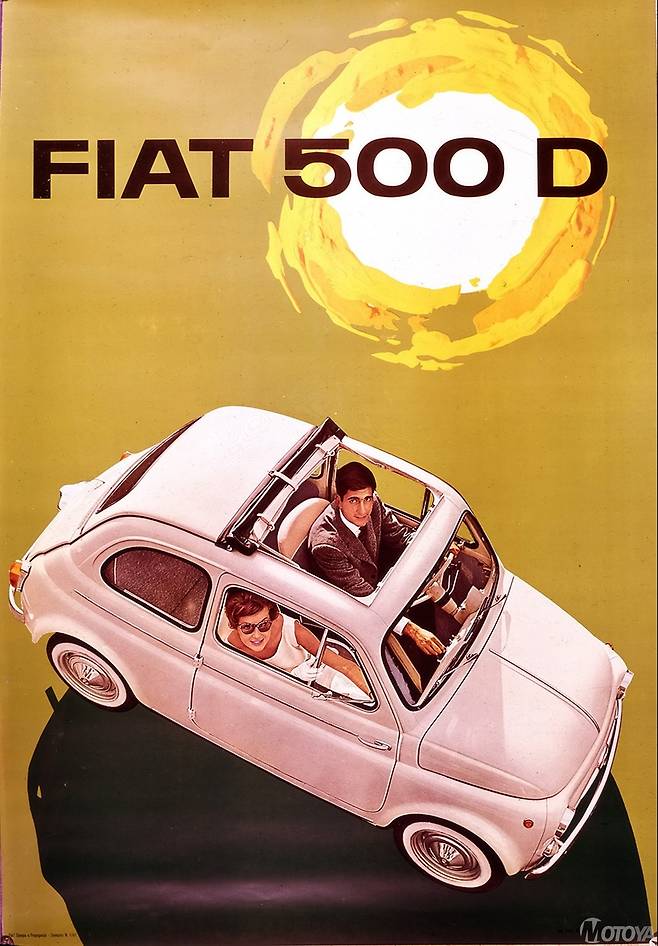 누오바 500의 생산이 본 궤도에 오르고 인기를 얻은 1960년, 피아트는 기존 누오바 500 라인업을 일거에 대체하는 새로운 버전인 500D를 출시한다. 피아트 500D부터는 누오바 500의 전체 캔버스탑이 사라진 대신, 선루프 버전만 만들어졌다. 엔진은 누오바 500 스포트에 사용된 21.5마력 엔진을 디튠하여 17.5마력을 내는 엔진으로 전면 교체했고, 접이식 등받이가 적용된, 제대로 된 뒷좌석을 갖추게 되었다.