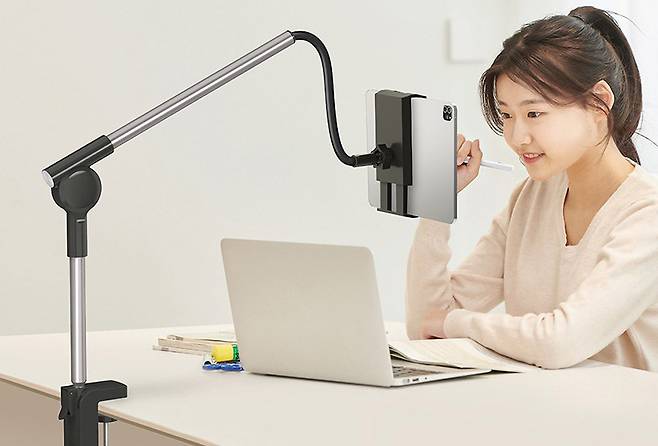 침대에서 스마트폰을 많이 사용한다면 침대용 테이블을 쓰지 않는 한 세워둘 장소가 마땅치 않다. 그나마 스마트폰은 크기나 무게가 손으로 들고 쓰기에 덜 부담스럽지만, 태블릿PC를 주로 쓴다면 내내 들고 쓰기에는 크기도 무게도 만만치 않다. 이럴 때 자바라 거치대를 쓰면 올려둘 적당한 공간이 없을 때에도 힘들이지 않고 안정적으로 거치할 수 있는데, 모락 스윙 자바라 탁상용 침대 거치대는 바 형태와 와이어 형태를 결합해 더욱 자유로운 각도 조절이 가능한 제품이다.