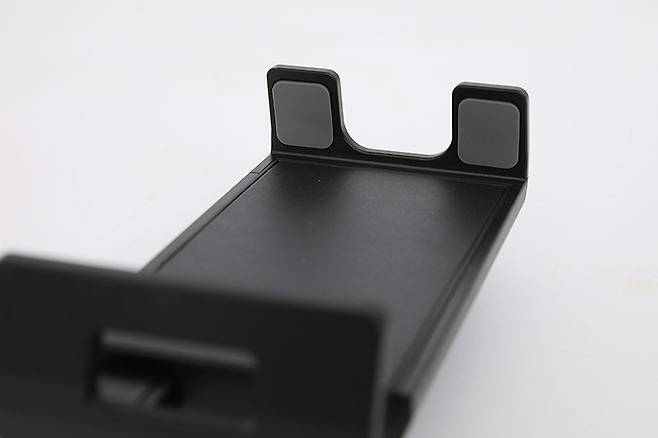 스마트 기기의 뒷면이 닿는 홀더의 넓은 부분에도 완충재가 부착되어 있어서 접촉으로 인한 흠집 발생을 방지해주며, 스마트 기기의 측면이 닿는 부위에는 실리콘 패드가 부착되어 있어서 흠집 방지 기능과 미끄러짐 방지 기능을 더하고 있다.