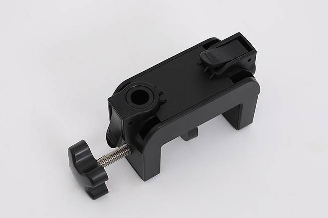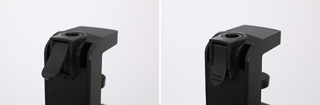 침대 거치 등 클램프를 수직으로 장착하지 않고 수평으로 장착할 때에도 지지대를 세워서 고정할 수 있도록 두 방향으로 지지대 고정홈이 준비되어 있다.