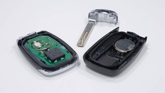 교체 방법은 간단하다. 스마트키의 비상키를 분리한 후, 그 틈새에 동전이나 얇은 일자 드라이버를 넣어 스마트키를 반으로 분리한다. 이때 너무 무리하게 힘을 주면 플라스틱이 깨질 수 있으니 조심해야 한다.