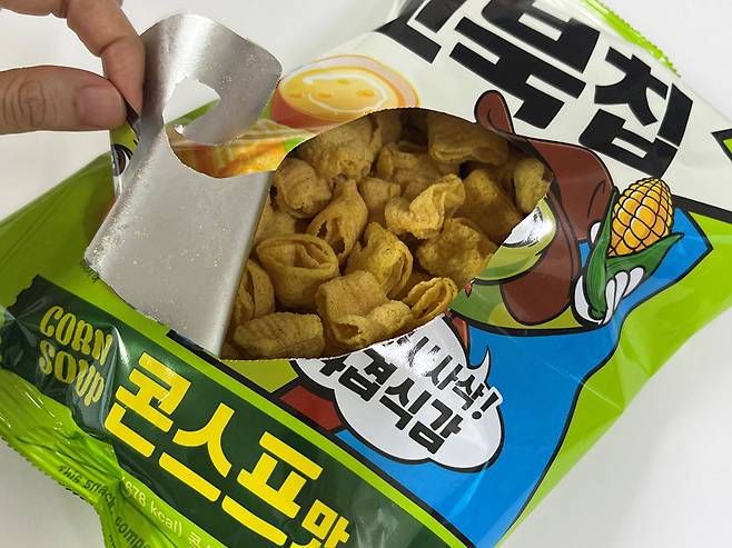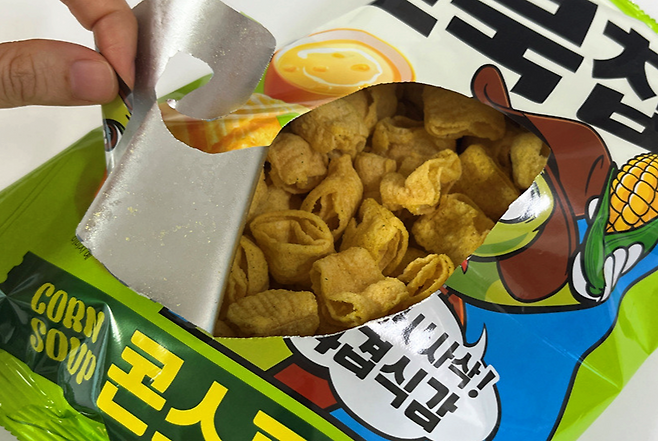 과자봉지 가운데 뜯기