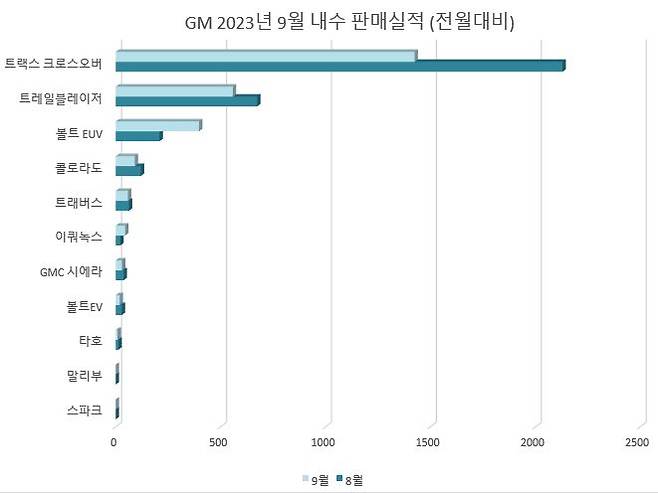 GM 한국사업장이 9월 한 달 동안 총 36,544대(완성차 기준)를 판매하며 전년 동월 대비 49.6% 증가세를 기록, 15달 연속 전년 동월 대비 상승세를 이어갔다. GM 한국사업장의 9월 해외 판매는 전년 동월 대비 66.2% 증가한 총 33,912대를 기록, 18달 연속 전년 동월 대비 성장세를 이어갔다.