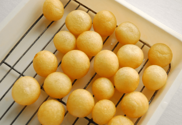 완성된 반죽은 손으로 조금씩 떼어내 동그랗게 빚어준다. 이때 크기는 한입에 쏙 들어갈 정도로 작게 만드는 것이 좋으며, 손에 전분이 조금 묻어 있어야 반죽이 달라붙지 않고 매끈하게 마무리된다.