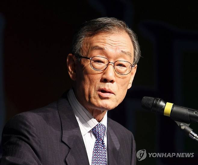 사진은 지난 2008년 4월 세종문화회관 예술의 정원에서 열린 '건국 60년, 60일 연속 강연'에서 강연자로 나선 노재봉 전 국무총리. 2024.4.24 [연합뉴스 자료사진]