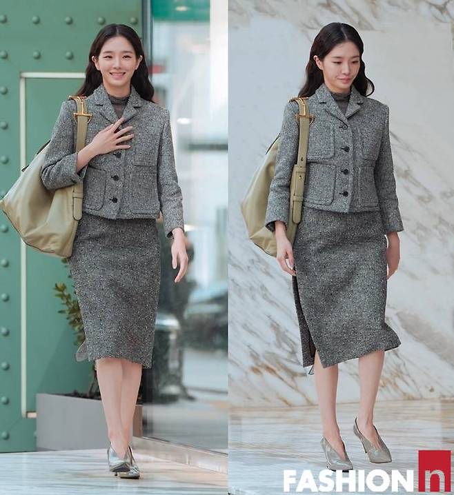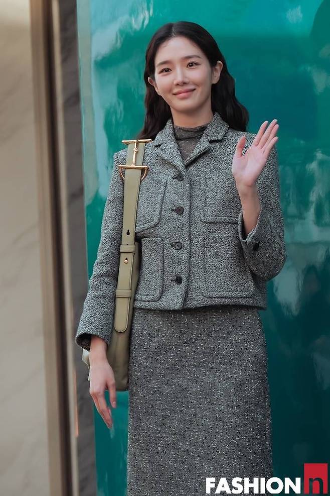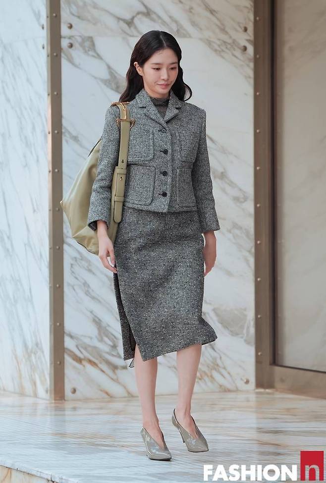 배우 박규영이 단아한 그레이 투피스룩으로 청담동을 밝혔다.
