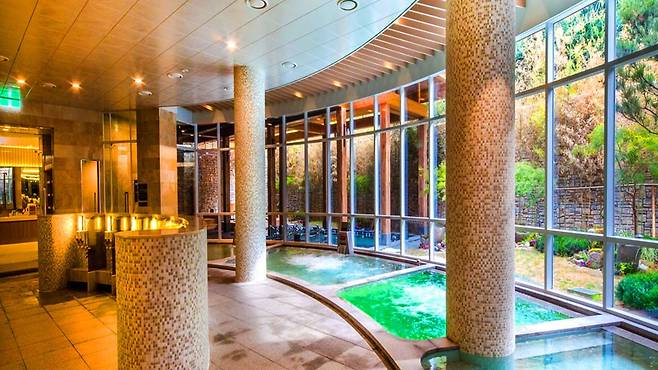 지하 1,000m 암반에서 용출되는 이 온천수는 황산염, 칼슘, 스트론튬, 염소이온 등 다양한 성분을 함유하고 있어, 몸과 마음을 이완시켜줍니다.
