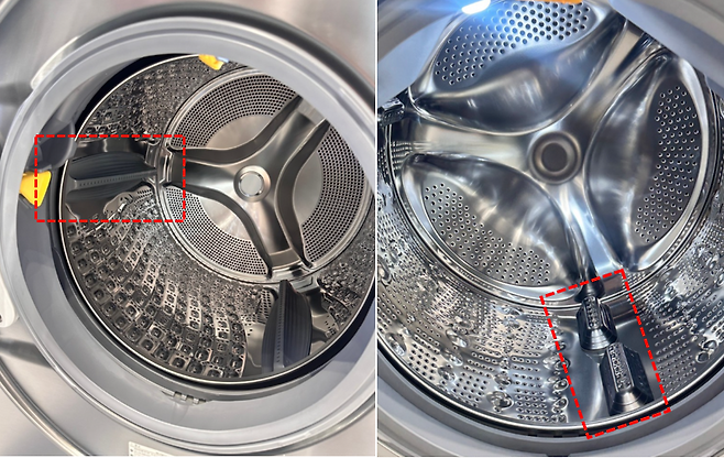 직접 오프라인 매장에서 실물을 확인해 보니 사소한 디테일의 차이가 존재했습니다. 드럼통 자체는 스테인리스지만 리프터가 삼성은 플라스틱이였고, LG는 스테인리스 였습니다. 인터텍 시험결과에 따르면 스테인리스 재질의 소재가 세균번식을 억제하는데 효과적이라고 합니다. 물론 사용환경에 따라 상이하지만, 이러한 디테일의 차이도 LG의 제품이 더 비싼데 영향을 미치지 않았나 싶습니다.