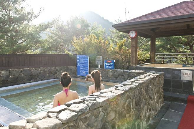 백암온천의 온천수는 53℃, 무색무취의 깨끗한 온천수로천식·만성피부질환·신경통·호흡기 질환에 효과적이라고 전해집니다.
