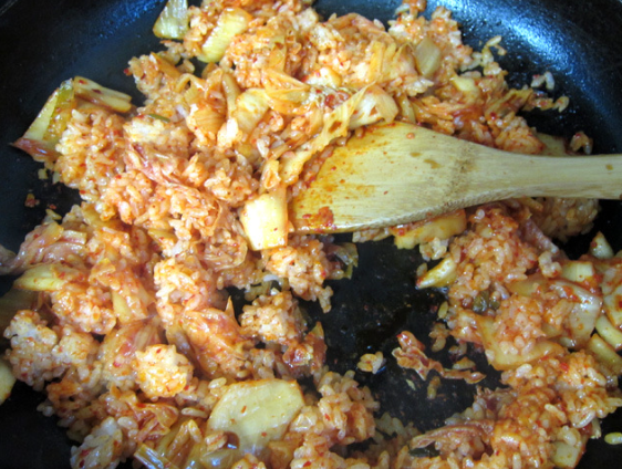 가능하다면 묵은지나 익은 김치를 사용하고, 너무 시다면 설탕을 약간 더해 산미를 조절해주면 좋다. 김치는 송송 썰어 기름에 볶을 때 더욱 풍부한 향이 올라오므로, 볶기 전에 물기를 살짝 짜주는 것도 포인트이다.