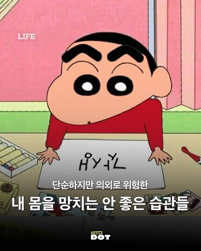 습관은 처음엔 거미줄처럼 가늘지만나중엔 쇠사슬처럼 단단해진다.좋은 습관을 만드는 것만큼 중요한 것은 나쁜 습관을 만들지 않는 것입니다나도 모르게 반복하고 있는나쁜 습관들이 있나요?우리 몸에 안 좋은 영향을 주는나쁜 습관들을 모아왔습니다.몇 개나 해당되는지 함께 체크해 봅시다!