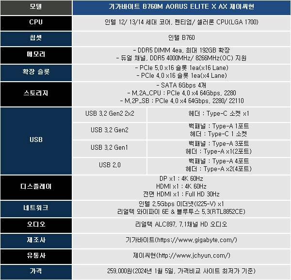 최신 CPU에는 최신 메인보드, 기가바이트 B760M AORUS ELITE X AX 제이씨현