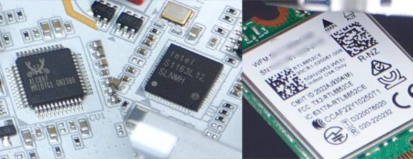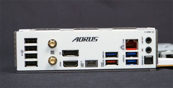 백패널 구성은 전작과 동일하다. 4개의 USB 2.0 포트와 3개의 USB 3.0 포트, 각 1개씩의 USB 3.1 및 USB 3.2 Type-C 포트가 배치되어 있고, 4K 60Hz 출력 지원 DP/ HDMI 포트, 2.5Gbps 이더넷 포트, 리얼텍 ALC897 코덱 오디오 포트, 와이파이 6E 및 블루투스 5.3 신호용 SMA 안테나 커넥터 2개로 구성되어 있다.