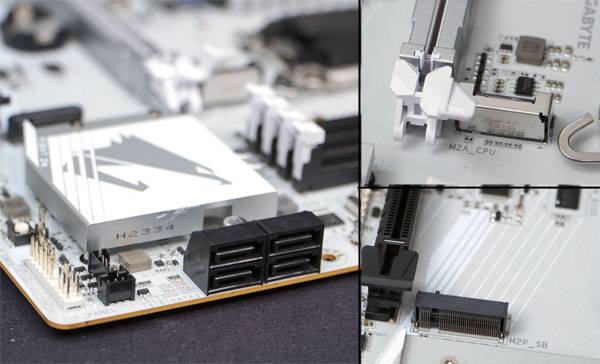 스토리지 구성 자체는 4개의 SATA 6Gbps 포트와 2개의 M.2 소켓으로 동일하다. 여기에 부팅 중 주요 부품(CPU/ VGA/ MEM/ BOOT)의 상태를 직관적으로 파악할 수 있는 LED를 SATA 포트 측면에 배치해 쉽게 확인할 수 있다.