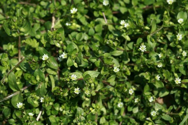 별꽃은 뿌리가 얕고 줄기에서 가지가 많이 갈라지며, 연한 녹색 잎은 달걀 모양으로 마주 난다. 꽃은 지름 5~10mm로 작다. 다섯 장의 꽃잎이 별처럼 펼쳐져 눈길을 사로잡는다. 한국뿐 아니라 유럽, 아시아, 북아메리카 등 전 세계적으로 분포한다. 영어로는 ‘치크위드(Chickweed)’로 불린다. 병든 닭이 별꽃을 먹고 기운을 차린다는 데서 유래했다. 그만큼 영양이 풍부한 식재료다.