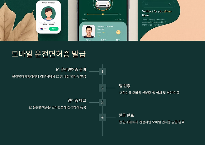 발급 완료: 앱 안내에 따라 진행하면 모바일 운전면허증 발급이 완료됩니다.