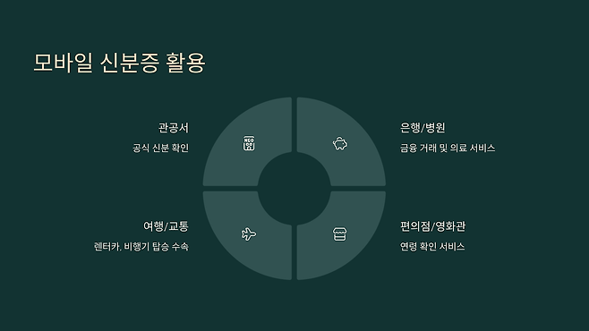 주요 활용처: 관공서, 은행, 병원, 편의점, 영화관, 렌터카, 비행기 탑승 수속 등 (사용처는 점차 확대될 예정입니다.)