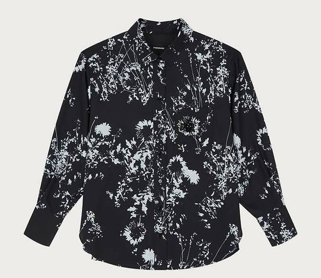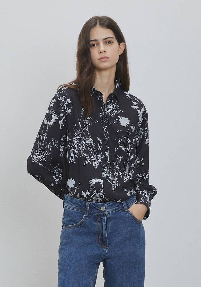 플라워 프린팅 셔츠 블라우스는 손으로 직접 그린듯한 아티스틱한 플라워 패턴이 멋스럽고 투톤의 컬러감이 고급스러운 폴리 소재를 사용해 착용감이 뛰어난 편이다.
