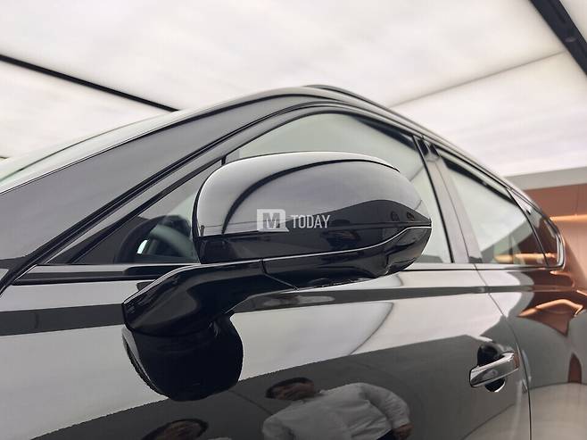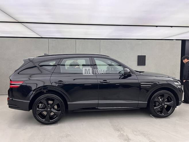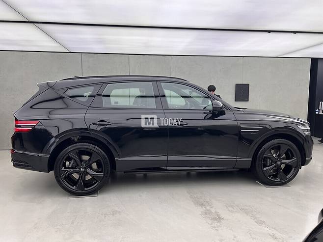 또한, 유광 블랙 색상의 22인치 휠과 블랙 전용 플로팅 휠캡을 기본 적용하고, 테일게이트에는 다크 메탈릭 색상의 제네시스(GENESIS) 레터링 엠블럼만 배치해 GV80 블랙만의 존재감을 완성했다.