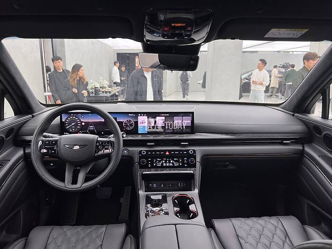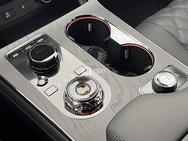 제네시스는 GV80 블랙의 노브 및 스위치류, 전자식 변속 다이얼(SBW) 글라스 내부 장식, 가죽 내장재 스티치, 글로브박스 개폐 버튼을 모두 블랙으로 표현했다.