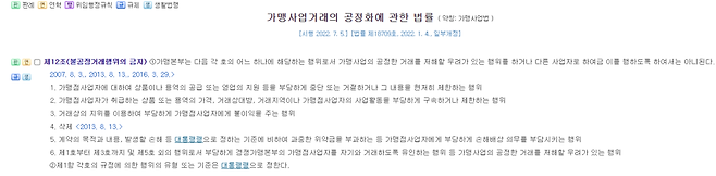 '가맹사업거래의 공정화에 관한 법률 12조'에서는 정당한 이유없이 가맹점에게 일정 가격으로 물건을 팔 것을 강요하는 행위를 금지시키고 있습니다.