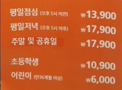 주말과 공휴일 디너 기준 가장 비싼 지점이 29,900원! 가장 저렴한 지점이 19,900원으로 무려 10,000원 씩이나 차이가 나죠.