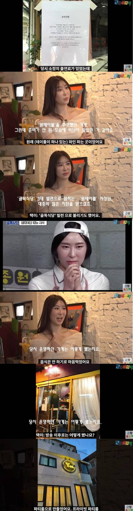 '골목식당'에 출연했던 원테이블 식당 사장이 가게를 접었다고 밝혔다.