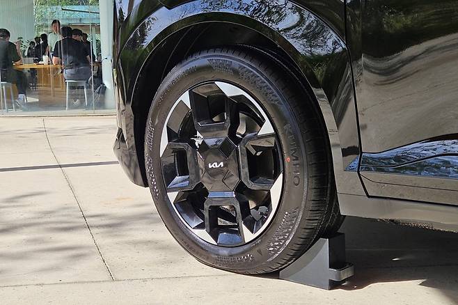 앞뒤 바퀴 사이엔 81.4㎾h 용량 배터리가 자리했다. LFP 사양으로 판매하는 중국과 달리, 국내 모델에는 리튬이온 배터리가 들어간다. 전기 모터 최고출력과 최대토크는 각각 218마력 및 30.1㎏·m. EV3와 배터리 용량은 같은데 출력이 14마력(10㎾) 더 늘었다. 1회 충전 주행거리는 460㎞로, 18인치와 19인치 휠 모두 동일하다. 350㎾ 급속 충전을 지원해 10~80% 충전을 약 30분 만에 마칠 수 있다.