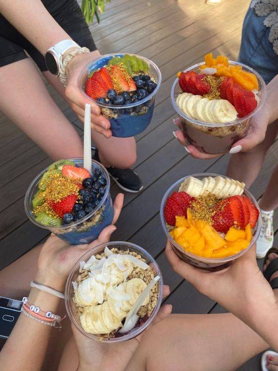 브라질을 대표하는 건강 디저트로, 아사이베리로 만든 냉동 스무디에 제철 과일과 그래놀라를 얹어 먹는 간식