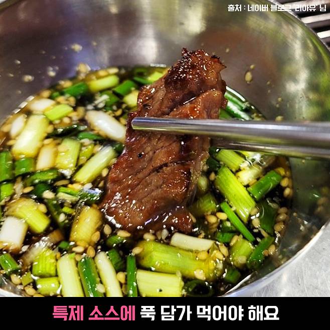 양념소갈비를 이 집만의 특제 소스에 푹 담가서 먹어야 하는데요. 양념갈비 자체의 맛이 강하지 않기 때문에 소스에 푹 담가서 먹어도 간이 세지 않아요.