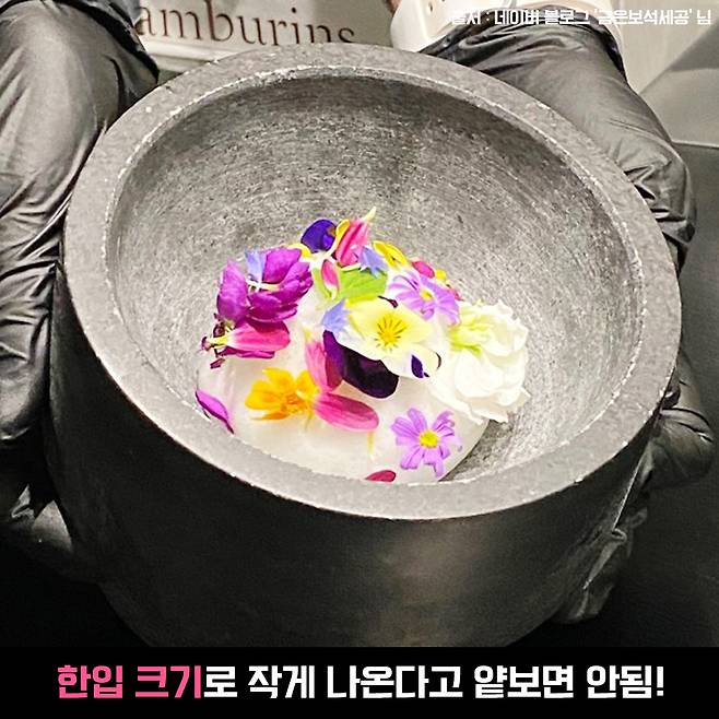 산다라박님이 ‘나혼자 산다’에서 11가지의 코스 요리를 멋지게 클리어한 먹방을 선보인 바로 그 집! 한식 퓨전 파인다이닝 애리아 에요. 식전 음식부터 다과까지 총 11가지의 음식이 한입 크기로 작게 나오는데, 요 모든 걸 산다라박님이 다 먹어서 화제가 됐었죠.