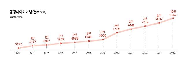 사용자 편의성을 높이기 위해 데이터 형식을 개선하고 개방 방식을 다양화한 점도 눈에 띕니다. 이를테면 특정 소프트웨어에 제한되지 않고 기계판독이 가능해 데이터 활용성이 높은 ‘오픈포맷 데이터’ 비중이 8.7%에서 98.6%까지 올랐습니다. 행안부는 민감한 정보가 포함된 데이터도 안전하게 활용할 수 있도록 한 ‘진위확인 서비스(원천데이터와 비교해 정보 일치 여부만 확인)’, 재현데이터(원천데이터와 통계적 유사성이 확보된 가상의 데이터)의 개방 방식도 도입했습니다.