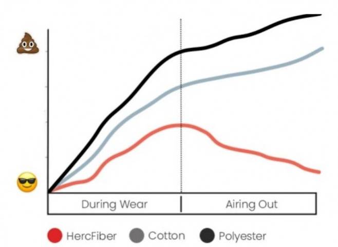 허크리온은 구리섬유 특유의 항균성에 대나무와 유칼립투스, 너도밤나무의 통기성과 소취력을 더해 기능성을 키웠다. 덕분에 허크파이버로 제작한 크리비는 세균을 파괴할 뿐만 아니라 세탁 없이 오래 입어도 냄새가 나지 않고 습기가 차지 않는다는 게 회사 설명이다.