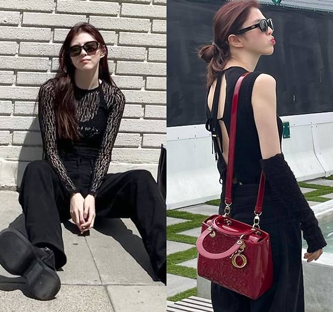 공개한 사진에서 한소희는 뒤태가 예쁜 백리스의 블랙 민소매 티셔츠에 블랙 하의를 착용한 모습과 블랙 시스루톱에 블랙 팬츠를 착용한 올 블랙룩으로 눈길을 사로잡았다.