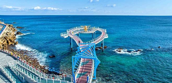 묵호 앞바다를 배 없이도 가까이에서 마주할 수 있는 도째비골 해랑전망대는 이색적인 구조와 바다가 맞닿은 특별한 산책 여행지다.