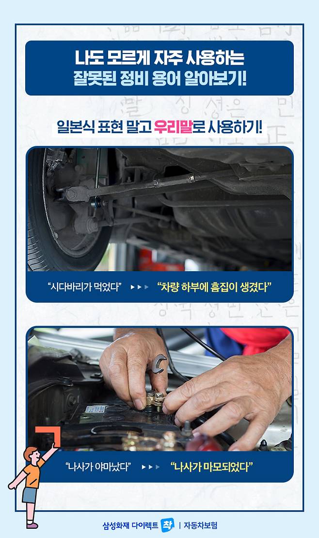 당연한 줄 알았던 자동차 정비, 기능과 관련된 용어들이 실제로는 잘못된 영어식 표현이나 일본식 표현이었다는 사실! 이번 한글날을 맞아 앞으로는 바르고 고운 우리말로 순화하여 사용하도록 합시다.