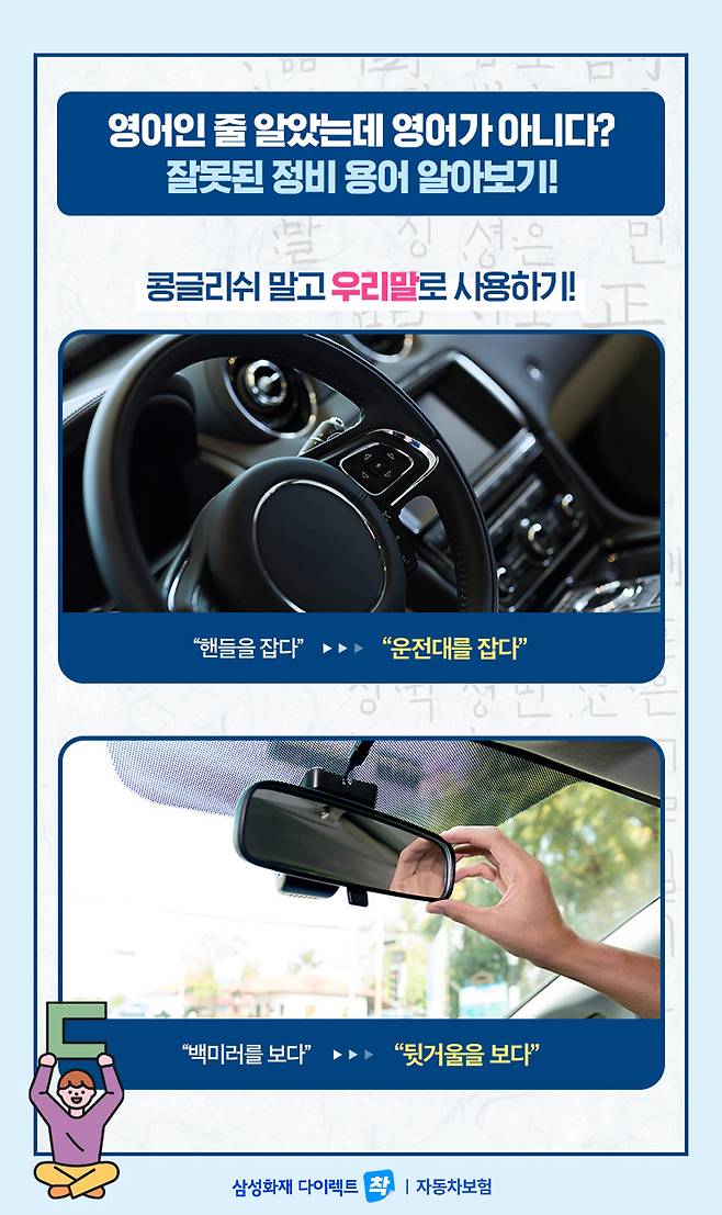 당연한 줄 알았던 자동차 정비, 기능과 관련된 용어들이 실제로는 잘못된 영어식 표현이나 일본식 표현이었다는 사실! 이번 한글날을 맞아 앞으로는 바르고 고운 우리말로 순화하여 사용하도록 합시다.