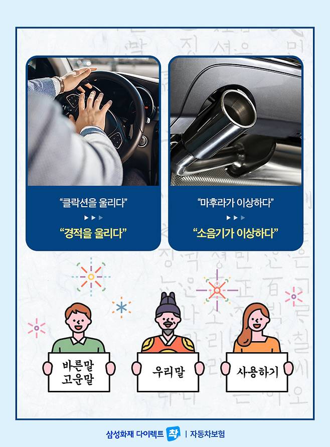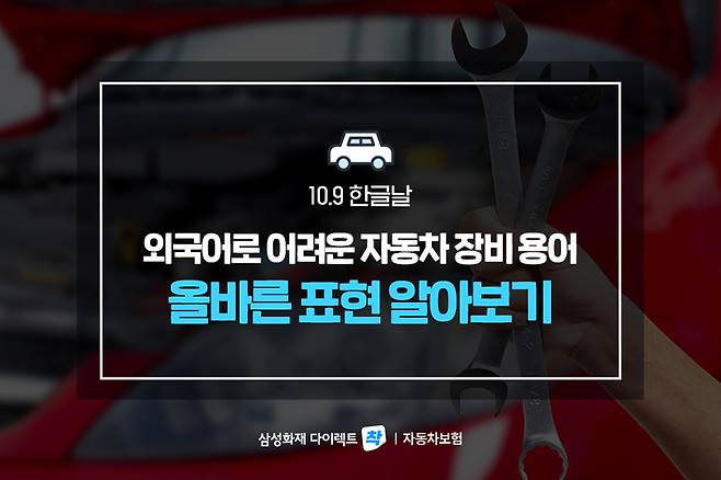 10월 9일은 한글날입니다. 한글날은 훈민정음을 창제해서 세상에 펴낸 것을 기념하고 우리 글자인 한글의 우수성을 기리기 위한 날인데요. 평소 우리가 사용하던 자동차 장비 용어 중 잘못 사용되고 있던 용어에 대해서 알아보고자 합니다. 일본식 표현이나 잘못된 영어 표현으로 알고 있었던 용어들! 어떤 것이 있었는지 알아볼까요?