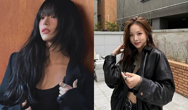 소재의 차이도 극적이다. 솔지의 룩은 메탈, 가죽, 망사 같은 거친 질감을 위주로 조합했다. 반면 채영은 레이스와 울 소재를 사용해 부드러움을 강조했다. 액세서리 없이도 룩이 꽉 차 보이는 이유다.