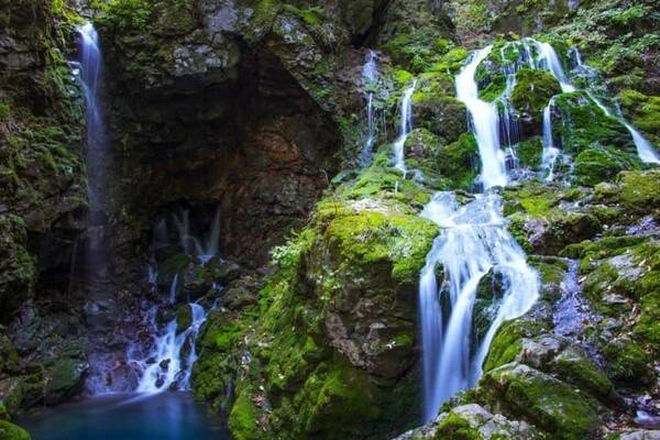 강원도 삼척시 도계읍 무건리에 위치한 이끼폭포는 이름 그대로 폭포와 주변 바위들이 푸른 이끼로 덮여 있어 신비로운 풍경을 자아냅니다.