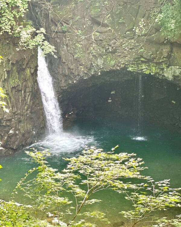 높이 약 15m의 폭포수가 깊은 소(沼)로 떨어지며, 주변의 현무암 절벽과 어우러져 독특한 경관을 형성합니다.