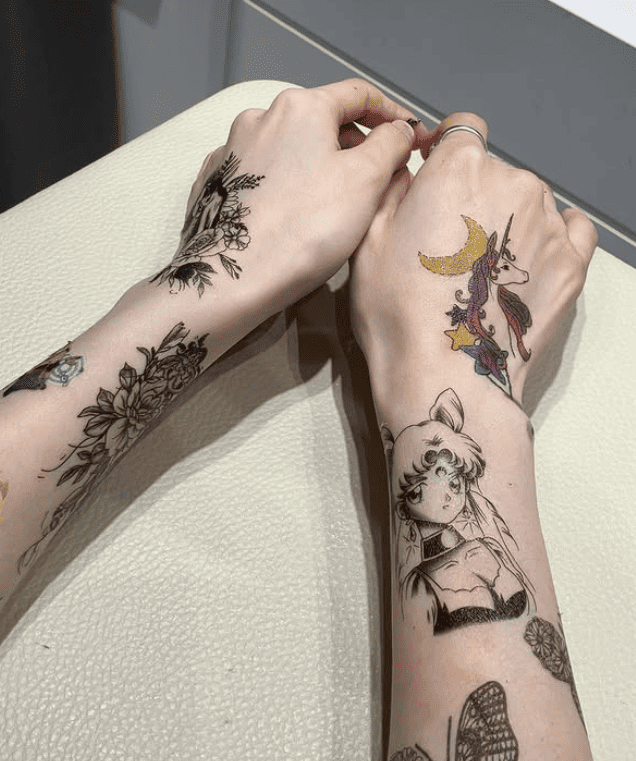 한소희는 데뷔 전 실제로 문신을 새긴 이력이 화제가 되며 주목받은 바 있습니다. 이후 소속사의 지원으로 2000만 원을 들여 타투를 제거했지만, 여전히 타투 스티커를 활용해 개성을 표현하며 독창적인 이미지를 유지하고 있습니다.