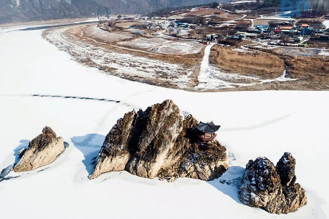 꽁꽁 언 강물 위에 우뚝 솟은 ‘도담삼봉’의 기암은 겨울 햇살 아래 선명하고 뚜렷한 풍경을 자아낸다. 이곳은 자연이 만들어낸 경이로운 아름다움과 조선의 개국 공신 정도전의 흥미로운 전설로 감동을 전한다.